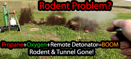 The Rodent Blaster Hot Shot RemoteĀ® system quickly eliminates your problem rodents and their tunnels. These guys eat, chew and destroy our yards. The HS-1 Remote is very fast. Only 10 Seconds of gas, and Boom you are done. It uses a precise mixture of propane and oxygen with a remote detonating device to exterminate the pests and their underground homes quickly, safely and humanely. It is safe for the environment and will not harm pets and wildlife unlike dangerous poisons and traps. The cost to operate the Hot Shot HS-1 Remote is only pennies per blast. Full 3 Year Limited Warranty. The fastest and best gopher and rodent control system available.We even have a Rapid Attack Trailer to keep your HS-1 System loaded and ready to work at the first sign of infestation.